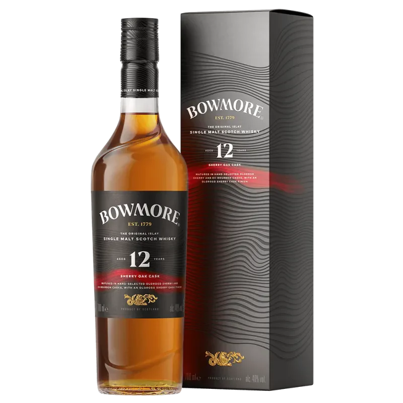 The Bowmore 12 Year Old Sherry Oak is a richly composed Islay expression that marries classic peat smoke with the indulgent depth of sherry-seasoned oak. Crafted at the historic Bowmore Distillery, this 12-year maturation reveals a darker, more opulent side of the distillery’s coastal character.